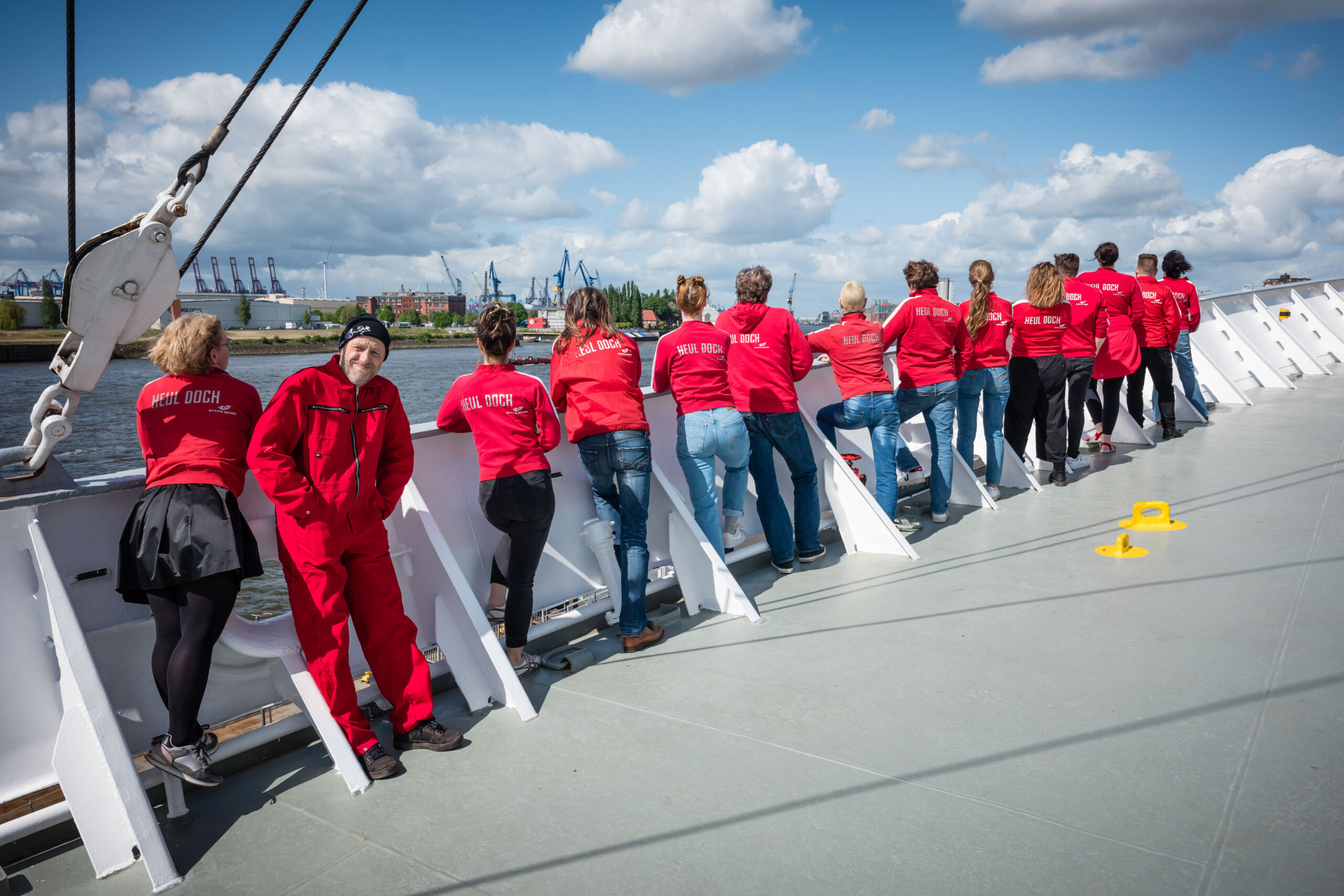 Improtheater im Hamburger Hafen, zwei Fuß über der Elbe: Auf dem ehemaligen Frachtschiff inszenieren vier Fabulierer in maritimer Atmosphäre abenteuerliche Geschichten rund um das Leben auf dem Wasser.