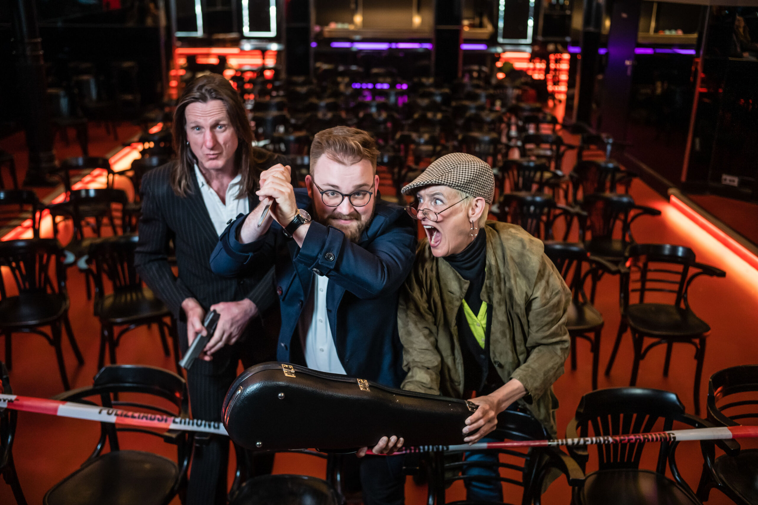„Morden im Norden“ ist nichts für schwache Nerven. Beim Improkrimi der Steifen Brise erfindet das Publikum die Todesart: Unter Palettentürmen begraben? Aus vielen Stichwunden langsam verblutet? Dem Gift der vielen Schlangenbisse erlegen? Wir wissen nicht, wann, wo und auf welche Art und Weise das Opfer an diesem Abend das Zeitliche segnen wird. Das weiß nur das Publikum. Drei Verdächtige, ein Opfer, ein*e Ermittler*in – mehr brauchen wir nicht, um mit dem Publikum einen interaktiven Krimiabend zu verbringen. Die/der Ermittler*in der Steifen Brise always lives twice…