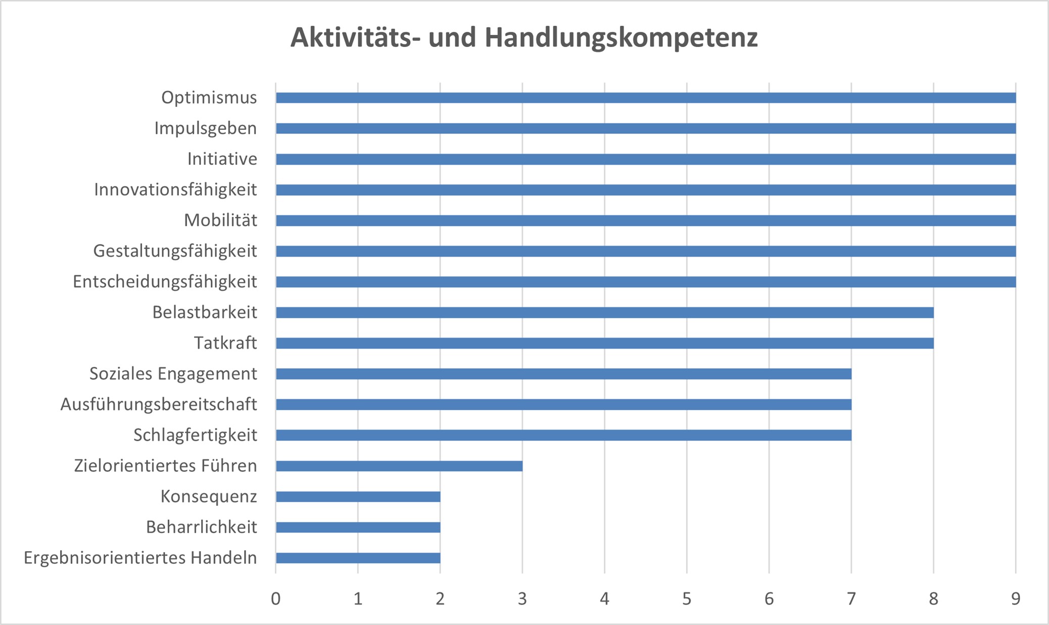 • Aktivitäts- und Handlungskompetenz, wie z.B. Entscheidungsfähigkeit, Innovationsfähigkeit, Initiative