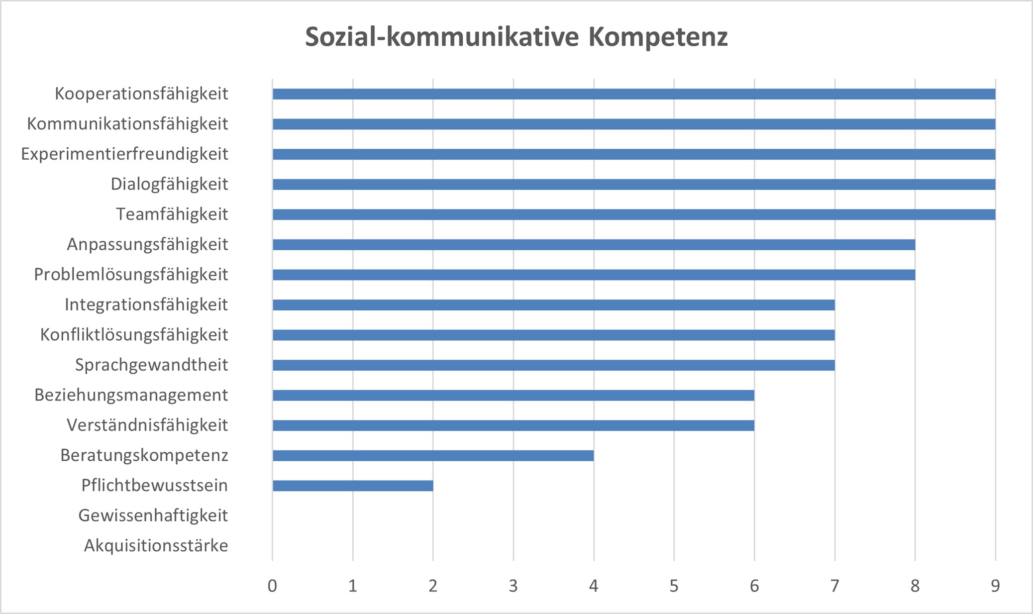 • Sozial-kommunikative Kompetenz, wie z.B. Teamfähigkeit, Experimentierfreudigkeit, Anpassungsfähigkeit