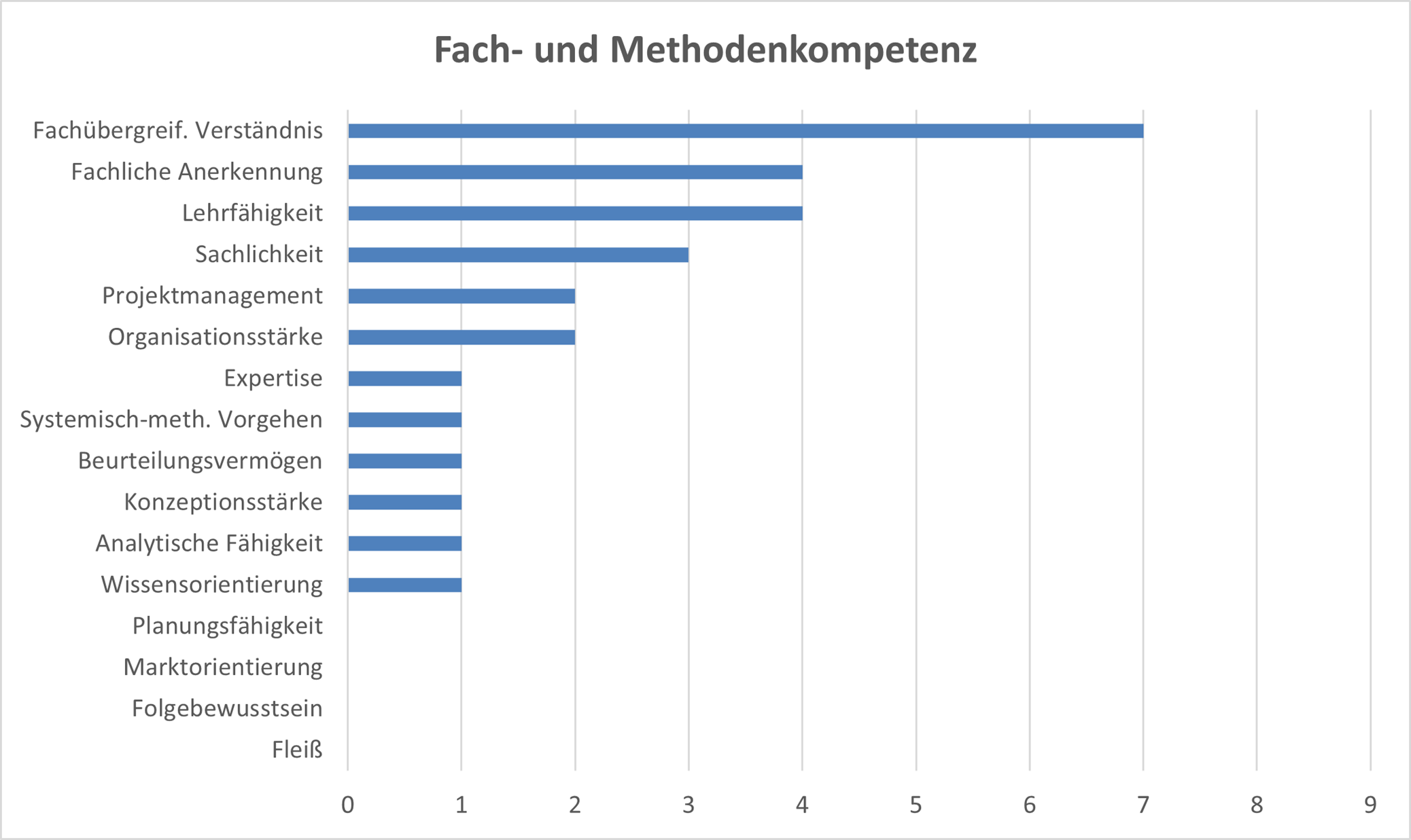• Fach- und Methodenkompetenz, wie z.B. analytische Fähigkeiten, Wissensorientierung, Sachlichkeit