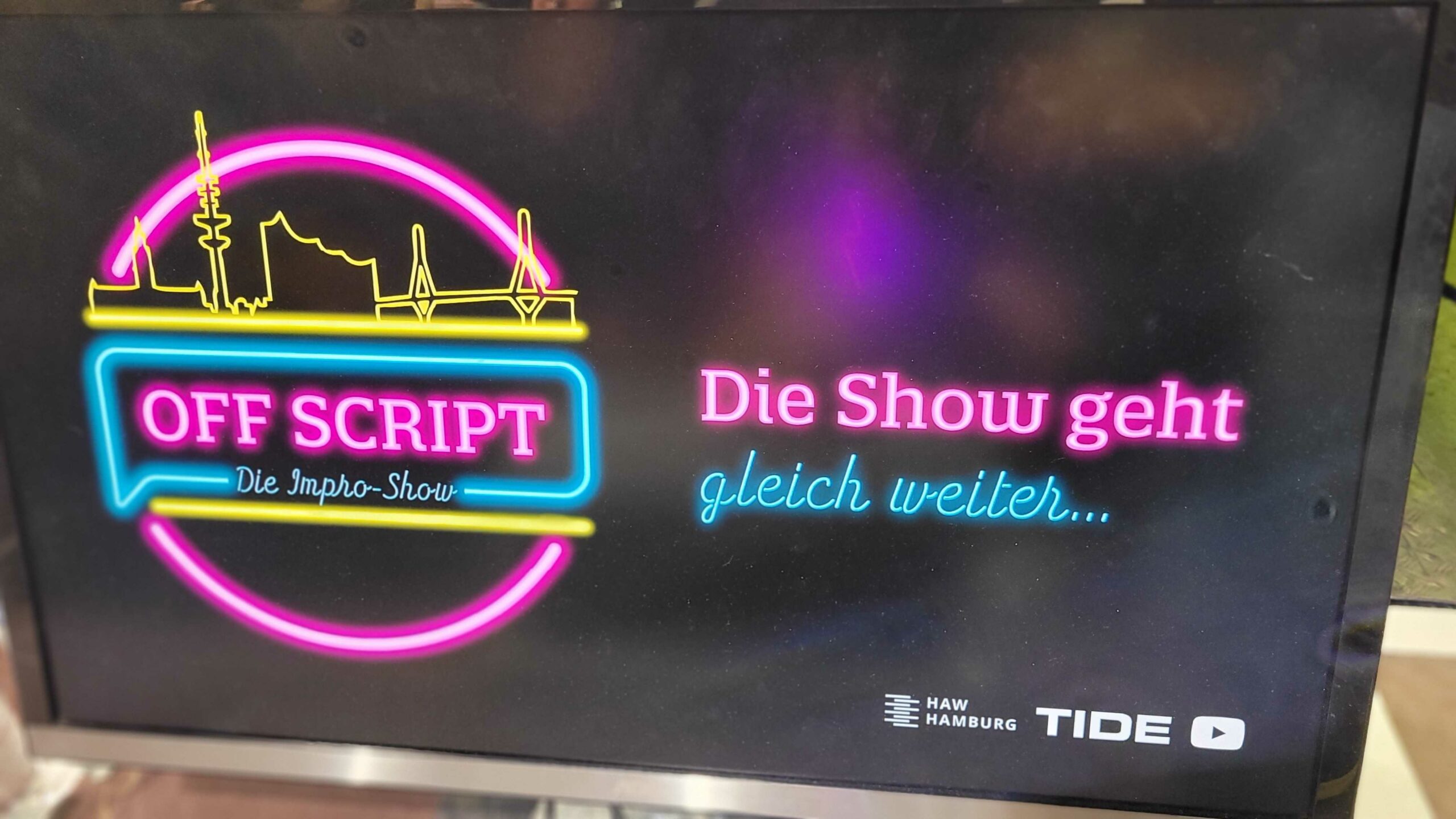 🎬✨ Wir waren Teil von „Off Script“ – einer Impro-Show zwischen Late-Night-Talk und Theater. Gemeinsam mit Studierenden des Studiengangs Medientechnik an der Hochschule für Angewandte Wissenschaften Hamburg (HAW Hamburg) sind live auf der Bühne spontane Szenen, Geschichten und Figuren entstanden – komplett ohne Drehbuch.
